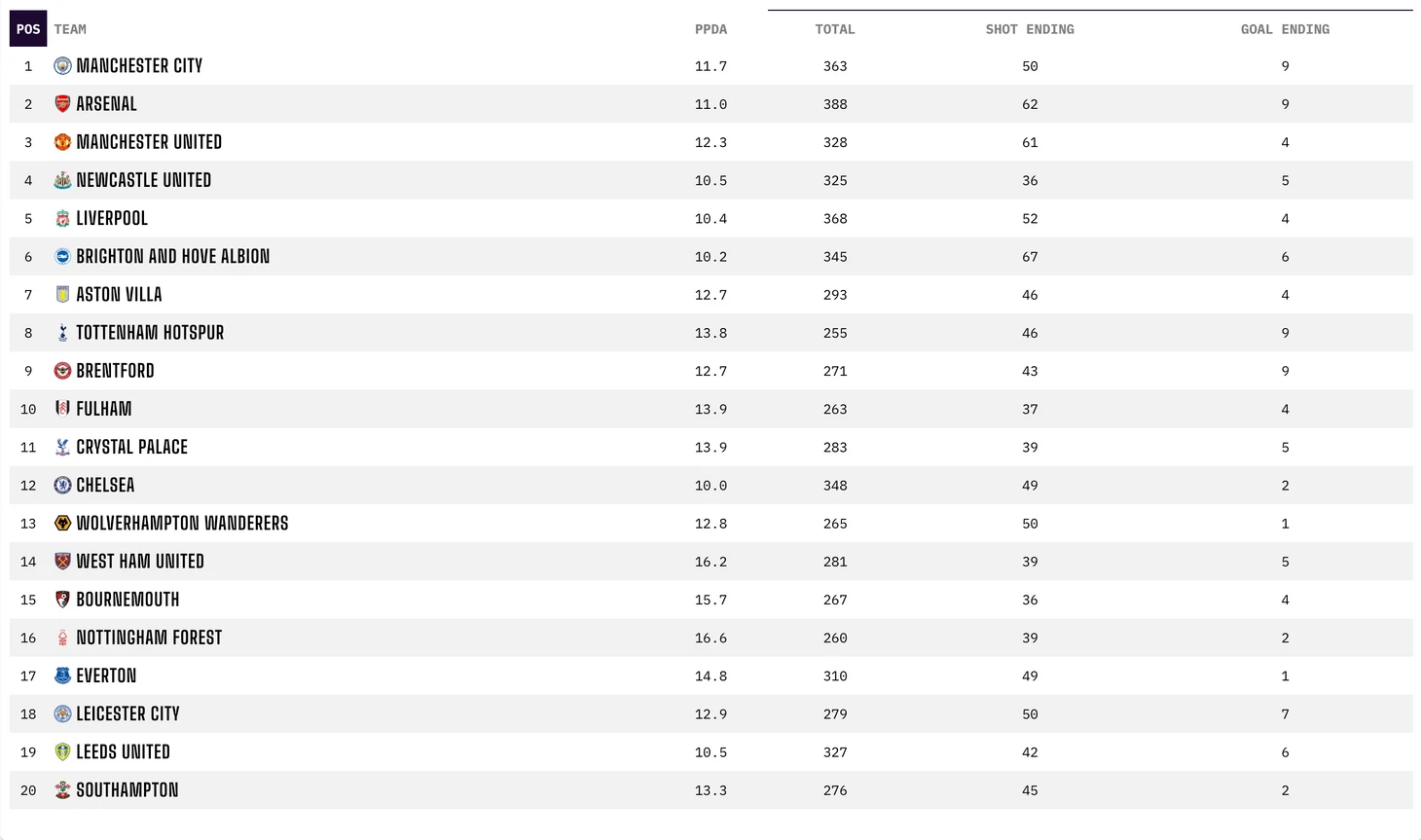 По интенсивности прессинга видно, почему к конце сезона «Брайтон» устал. В АПЛ очень тяжело высоко прессинговать любого соперника, а наш клуб никогда не отказывался от этого. Клуб второй в чемпионате по этому показателю. Лучше только у «Челси» и такие же цифры у «Лидса».