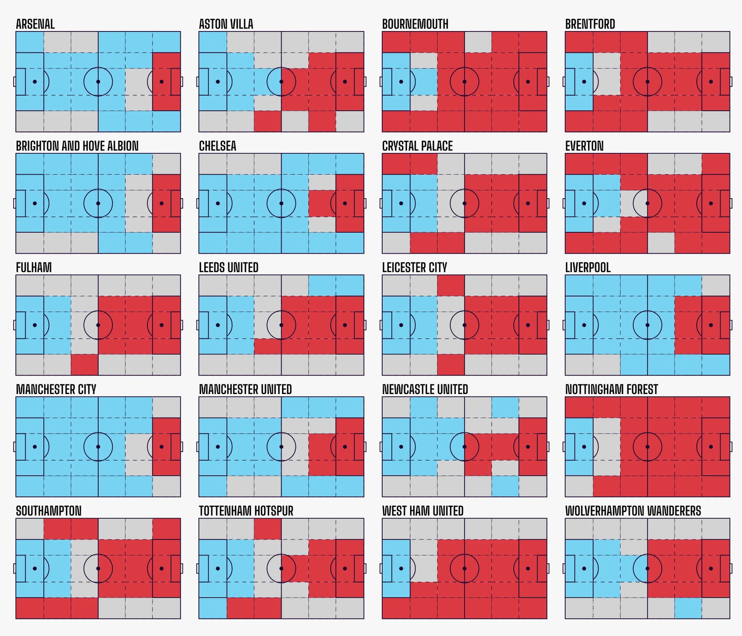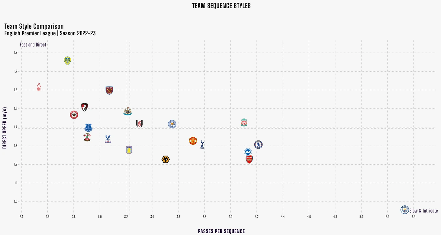 Метрика стилей для «Брайтона» в этом сезоне — фантастика, особенно с учетом отсутствия скамейки. Команда с приходом Де Дзерби не отказывает от своего стиля и запирает на своей половине поля абсолютно любую команду. По сути, только «Сити», «Арсенал» и отчасти «Челси» играли горизонтальнее «Брайтона», но здесь просто огромный разрыв с точки зрения качества состава и возможности его ротировать. В конце сезона было пару матчей, когда «Брайтон» выглядел невероятно уставшей командой. С учетом выхода в ЛЕ, матчей станет только больше, поэтому летом я ожидаю еще больше новых подписаний.