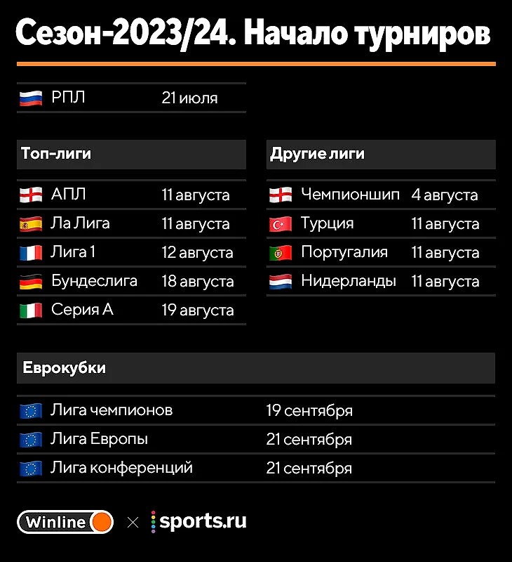 Лиги уже публикуют подробные календари: по турам и датам. Например, знаем самое главное и про РПЛ, и про АПЛ.