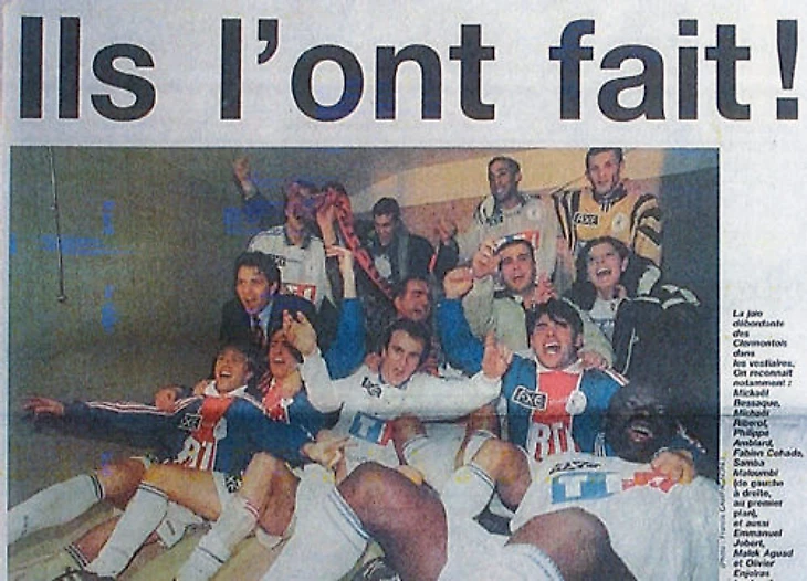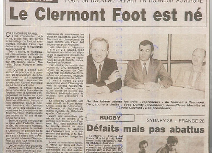 1990-й, Ив Кинти, обеспеченный мужичок из Клермона, страховой агент, и его товарищи - Жан-Пьер Морале и Луи Гашон, решают помочь региональному футболу выйти из непродолжительной комы. Тут я постараюсь вставить вам информацию из тогдашней газеты, фотография представлена тут. Качество ужасное, зрение у меня, хоть и в линзах, не очень, поэтому исходим из того, что разглядели - в прямом смысле.