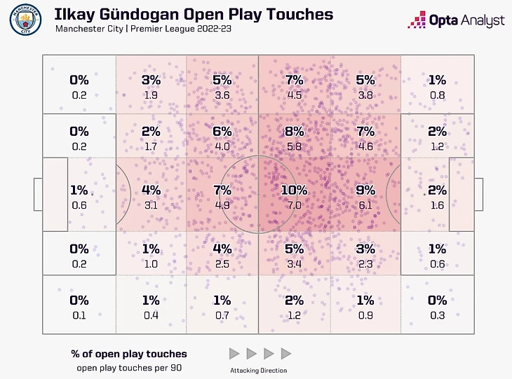 Вот карта касаний Гюндогана из прошлого сезона АПЛ. Немец практически везде.