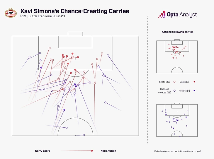Симонс стал также важным игроком для прямолинейного футбола «ПСВ»: у команды Петера Боса лучший показатель по количеству фастбрейков в Эредивизи (36), и лишь у «Милана» (52) и «Лейпцига» (44) этот показатель лучше в топ-7 европейских лиг.