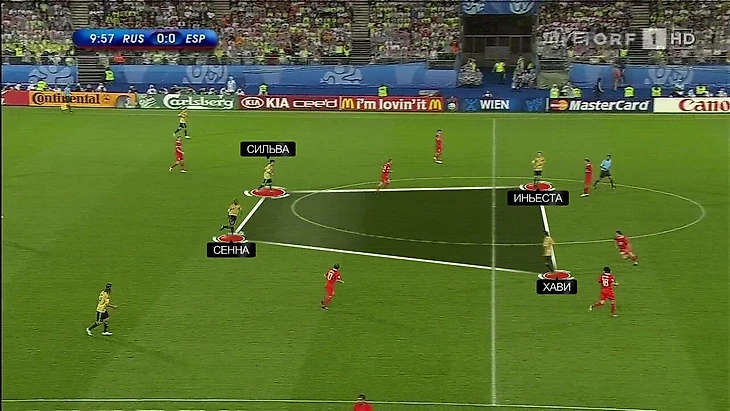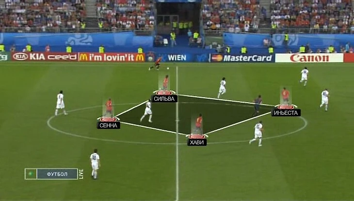 В первую очередь за это отвечал центр поля, где координировались все полузащитники, включая тех, кто номинально стартовал на фланге – Сенна, Хави, Иньеста, Сильва (иногда еще Фабрегас).