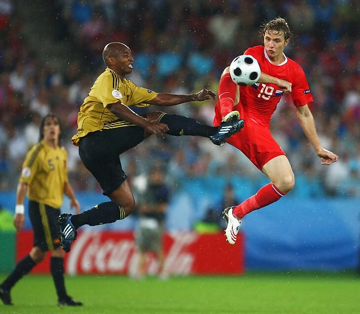 В то же время Испания-2008 не продолжала традиции испанских сборных, которые были до нее. Даже команда-2006 (Арагонес уже был тренером) сильно отличалась. Ранее стиль весьма справедливо характеризовался ее прозвищем («красная фурия») – смелый, интенсивный и вертикальный. В разгар своего правления Арагонес затеял революцию – избавился от Рауля и вооружился сверхтехничной (и сверхлегкой) полузащитой из Давида Сильвы, Андреса Иньесты и Хави.