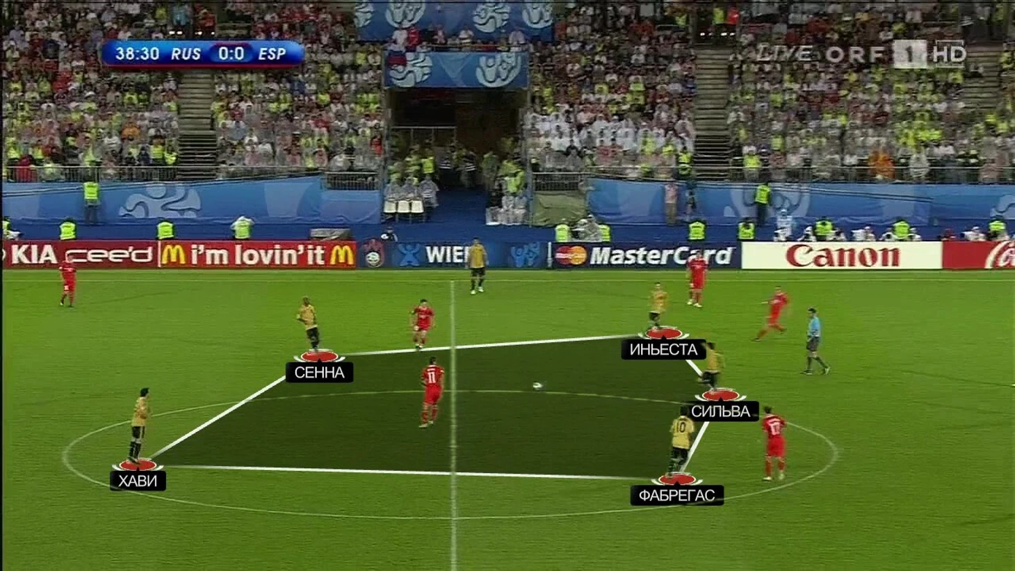 Лучше всего важность каталонца подчеркивает победный гол в финале. Сначала Хави опускается к Сенне, чтобы начать атаку, а позже меняет позицию так, что в момент голевого паса на Торреса оказывается десяткой (откуда и ассистирует):
