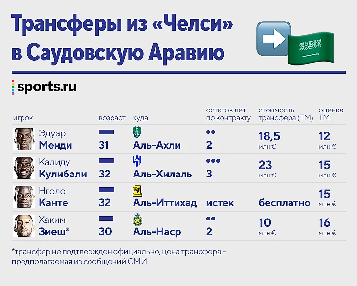 Эдуар Менди перешел в «Аль-Ахли», Нголо Канте подписал контракт с «Аль-Иттихадом», а Калиду Кулибали – с «Аль-Хилалем».