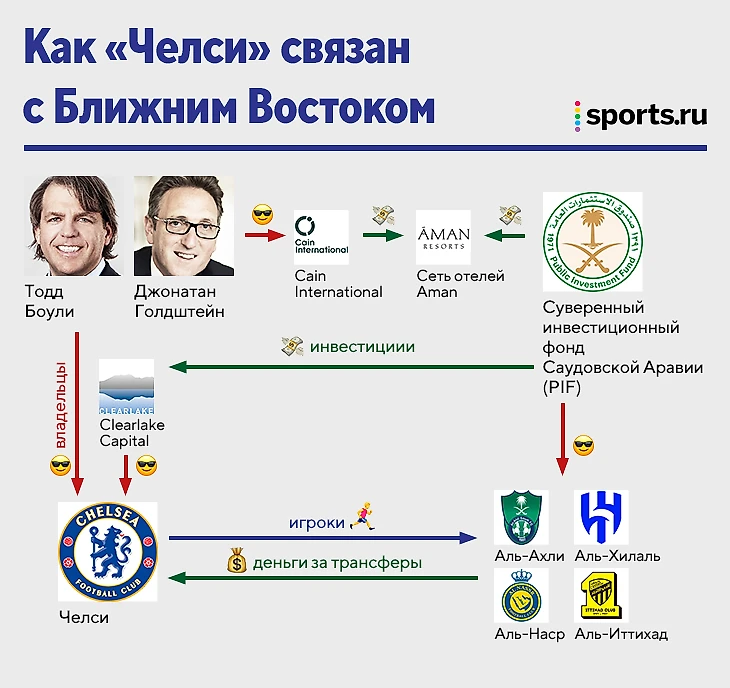 Дело не в стране назначения, а в конкретных командах. Четыре клуба, куда переходили или еще могут перейти игроки «Челси», принадлежат одному собственнику – суверенному инвестиционному фонду Саудовской Аравии.