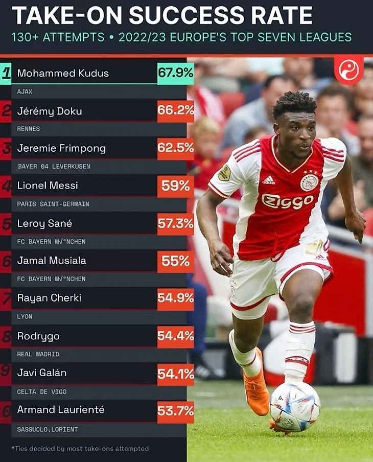 Первая и самая главная позиция, нуждающаяся в усилении - правый фланг атаки. Туда бы я хотел яркого дриблера с хорошим ударом и неплохим пасом. Одним из вариантов, которых я бы хотел видеть там является Жереми Доку из «Ренна». Игрок с хорошим дриблингом, который прокачался в том, как нужно действовать после удачной попытки дриблинга. Если раньше он обыгрывал ради цифры, то сейчас видно, как после обводки, он ищет варианты продолжения атаки. Его винрейт в плане дриблинга показывает его определенный скилл в этом плане.