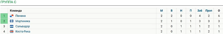 Если Сальвадор побеждает, то при победе Мартиники она вторая. При победе Коста-Рики надо смотреть разницу у Сальвадора и Коста-Рики. При ничьей, Сальвадор если он выиграет с разницей в 2 и больше мячей. При победе в 1 мяч, надо смотреть у кого больше забитых и Сальвадора или Мартиники. Если этот показатель одинаков, то Мартиника по личной встрече.
