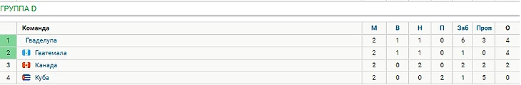 Если Канада не выигрывает у Кубы, то в четвертьфинале Гваделупа и Гватемала.