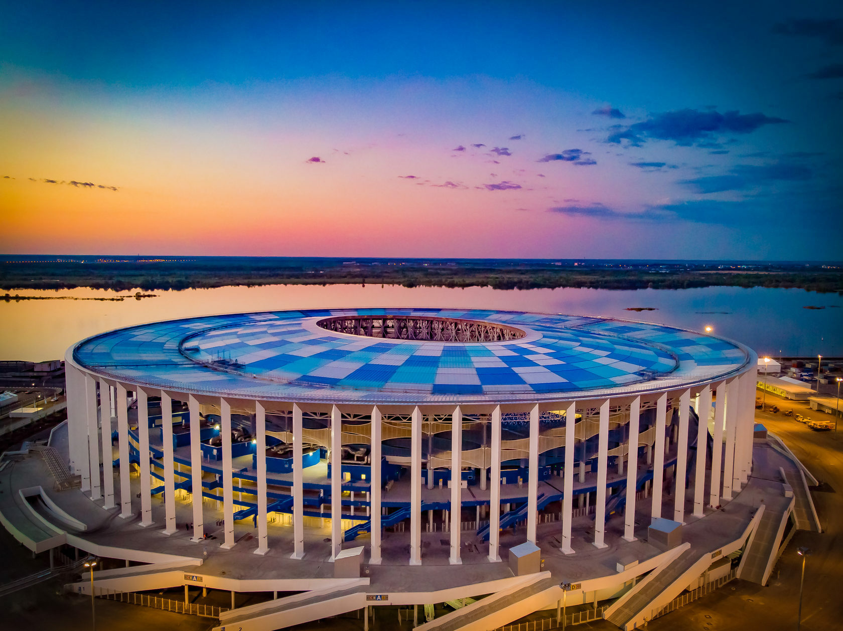 Домашний стадион футбольного клуба «Пари Нижний Новгород» вмещает 44 242 зрителя. Арена была построена в мае 2018 года к Чемпионату мира по футболу. Расположена на так называемой Стрелке — месте впадения реки Оки в Волгу.