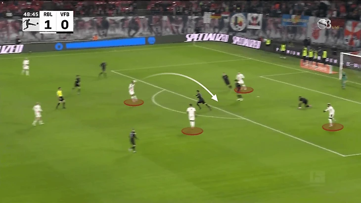 Собослаи сыграл ключевую роль в сильной переходной схеме Розе — он оставался выше, когда «Лейпциг» терял владение, чтобы вернуть мяч в прибыльных зонах.