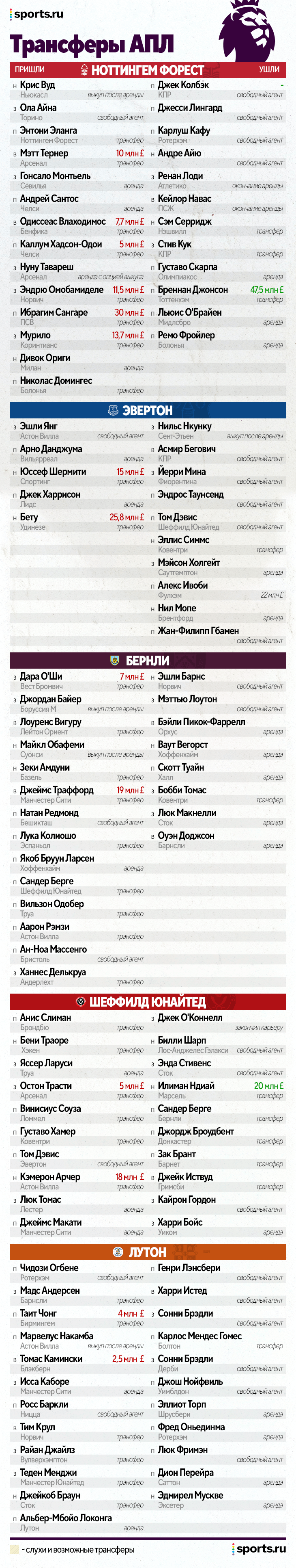 Скромнее всех на рынке показал себя «Лутон» (ожидаемо) – всего 9,5 млн фунтов в укрепление состава.