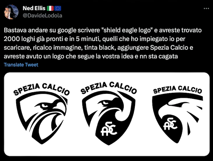 «Специя» утверждает, что новая эмблема чтит традиции клуба. Болельщики уже запустили петицию против ребрендинга