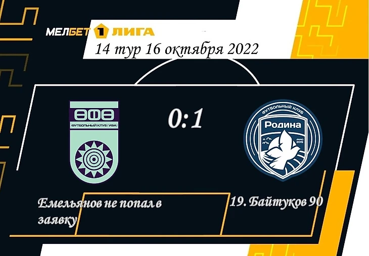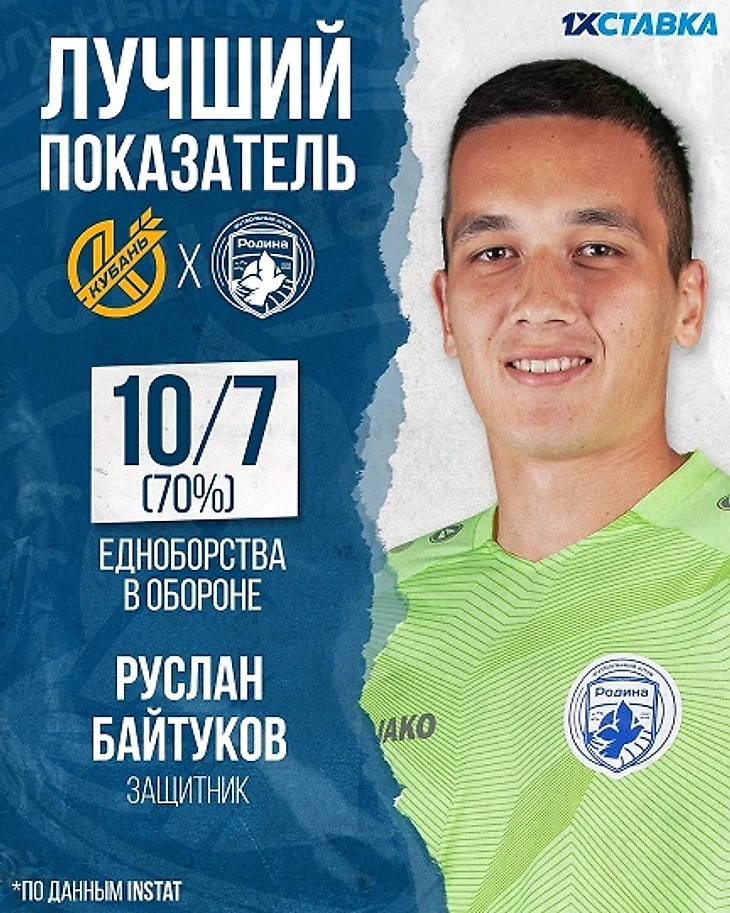 «Родина» сыграла отличный матч, не дав хозяевам ни разу ударить в створ. Байтуков в центре защиты показал лучшие цифры в команде по количеству единоборств.