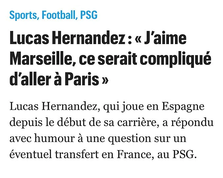 Люка Эрнандес хоть и никогда и не играл за «Марсель», а воспитывался в академии мадридского «Атлетико», но родился именно в этом городе. Вражда между ультрас «ПСЖ» и «Марселя» очень серьезная, но и сам игрок в одном из интервью заявил, что никогда в жизни не будет играть за парижан. Получается, что обманул собственных болельщиков.