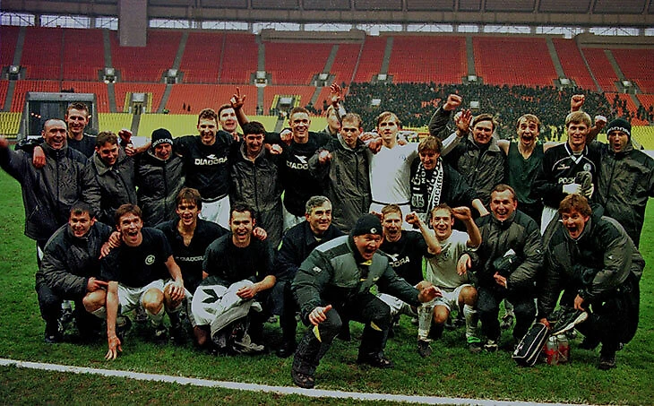 После этого выносили всех подряд. В мае, правда, встали и выдали четыре нулевые ничьи подряд, но благодаря отличному составу – Даев, Казаков, Семшов, Гашкин – финишировали четвертыми (после трех сезонов вне топ-10 – Sports.ru).