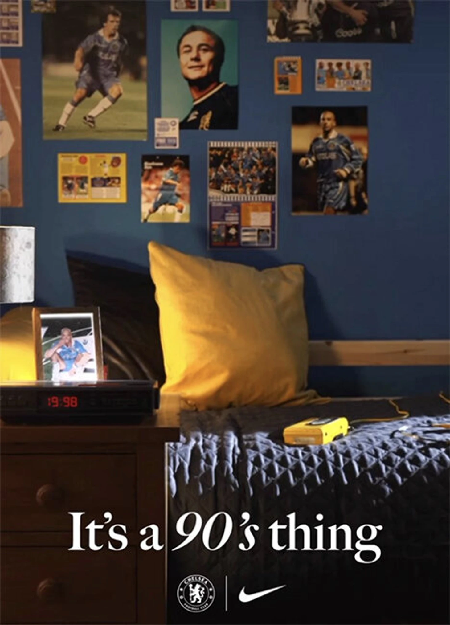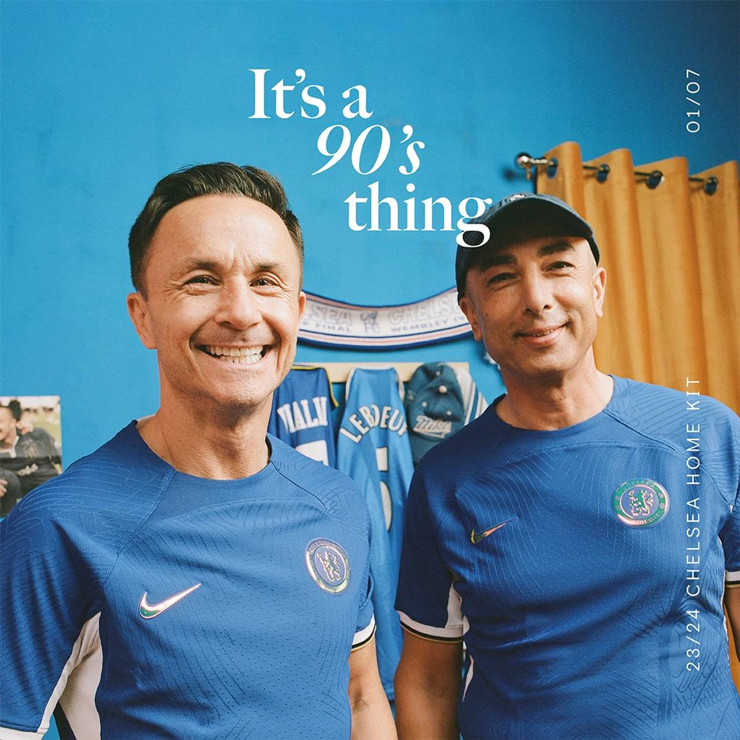 Соцсети «Челси» несколько дней прогревали болельщиков отсылками. Публиковали афиши с приставкой Nintendo, игрой «Змейка» и первой Sony Playstation. А еще стену с постерами, где были изображены герои команды-1997/98: Виалли, Джанфранко Дзола, Деннис Уайз.