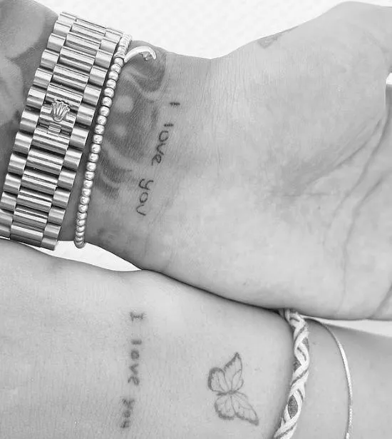 Пара даже набила на запястьях фразу «Я люблю тебя». Вероятно, эскиз был скопирован с реальных почерков Бена и Милли.