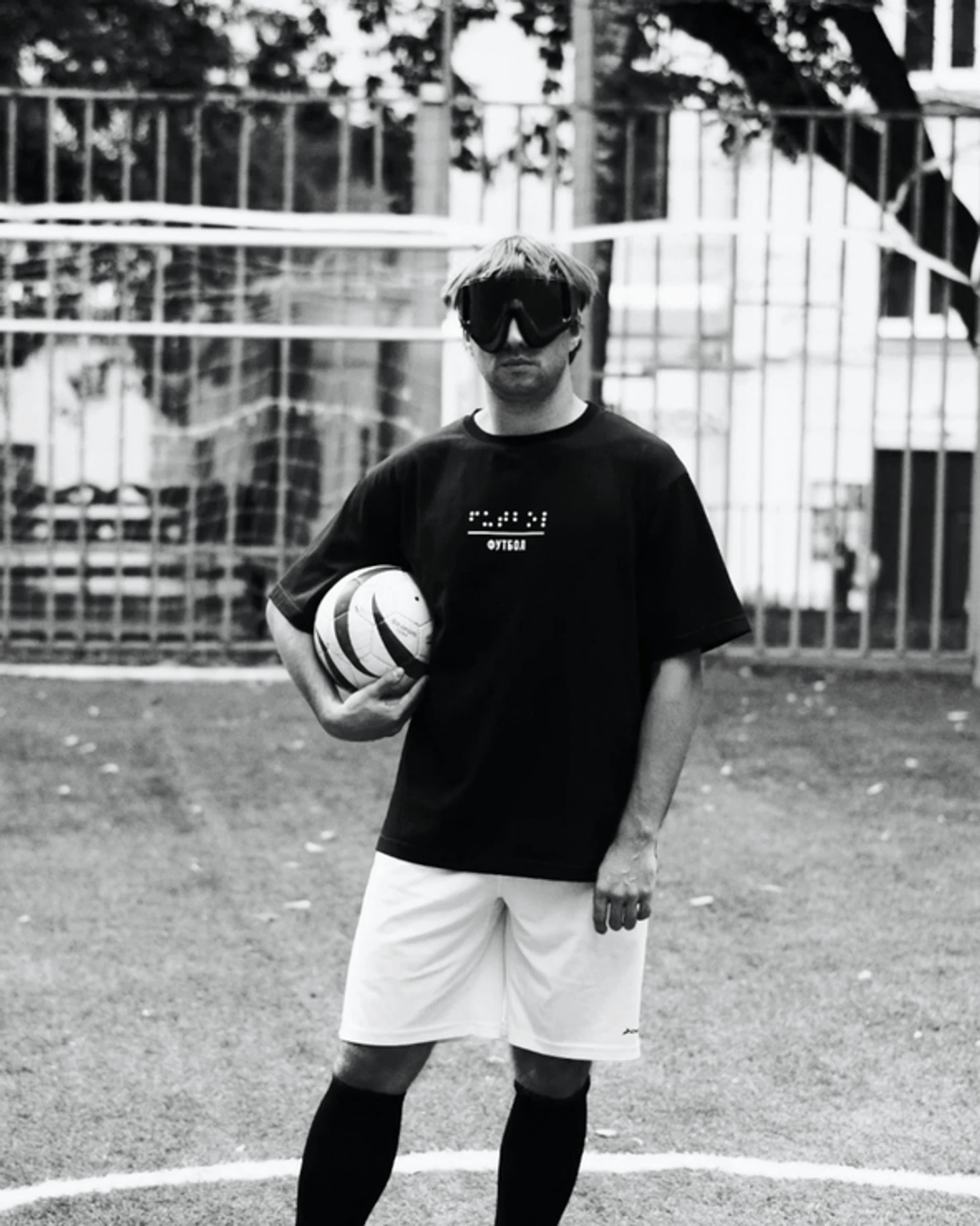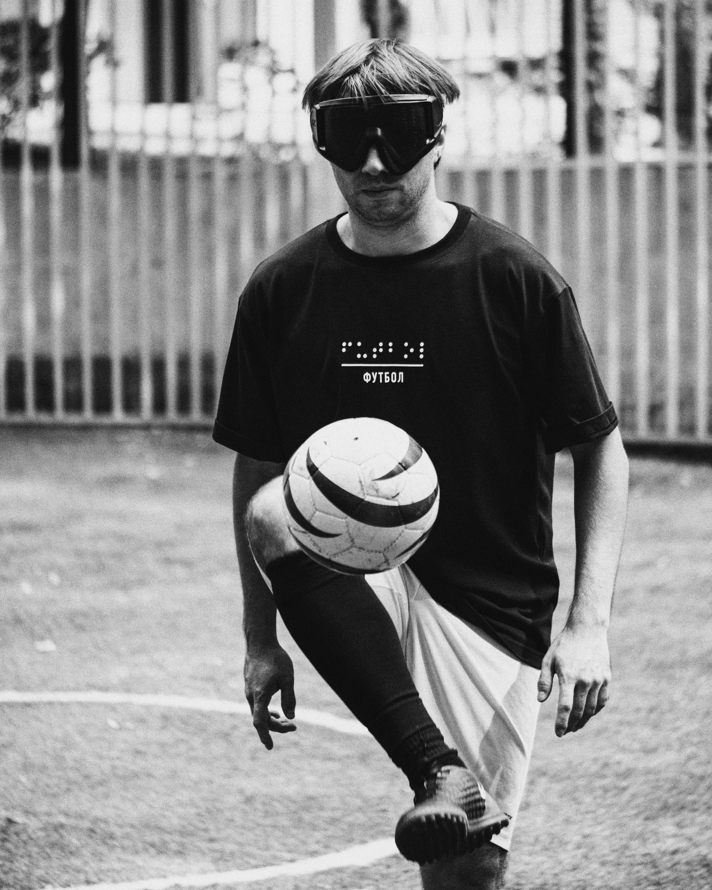 Итак. Лимитированный мерч Blind мы сделали вместе с незрячим футболистом, мастером спорта международного класса Евгением Шелаевым. Женя – чемпион Европы и многократный чемпион России по футболу (5x5). Футбол для незрячих (5х5) – это адаптированная версия мини-футбола (паралимпийский вид спорта), в который играют плоховидящие и слепые спортсмены.