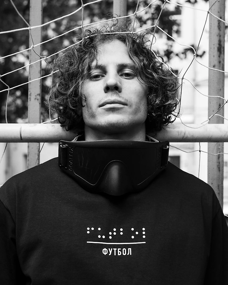 «К сожалению в нашем обществе не знают о таком виде спорта, как футбол слепых, поэтому моё основное желание – сделать так, чтобы как можно больше людей узнали о его существование! Когда Степан предложил создать совместный мерч, я с удовольствием согласился, поскольку слышал о его бренде и знал, что продукция очень хорошего качества, поэтому для меня большая честь сотрудничать с этим брендом», – сказал Женя. Кстати, его признали лучшим игроком чемпионата Росси 2023 года среди незрячих футболистов.