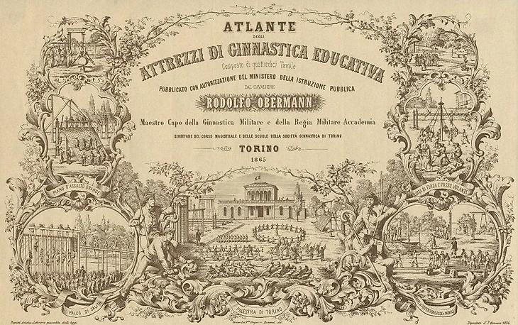 Правитель Италии Карло Альберто в 1833 году пребывал в весьма удручающем психологическом состоянии - его супруга Мария Тереза фактически не вылезала из постели по причине постоянных болезней суставов и мышечной слабости. В этот же период его дворец посетил один из швейцарских философов, вызванный лично королевским советником в командировку для увеселения Его величества. Его звали Рудольф Оберманн. Увидев короля в печали и вызнав причину ее появления, Рудольф с упоением начал рассказывать о новом европейском увлечении в кругах высшего сословия - «гимнастике». Разного рода упражнения и физические нагрузки легко ставят на ноги и прочищают голову, но при этом может и эмоционально подкосить - поэтому следует избегать внедрения соревновательного контекста в перечень упражнений.
