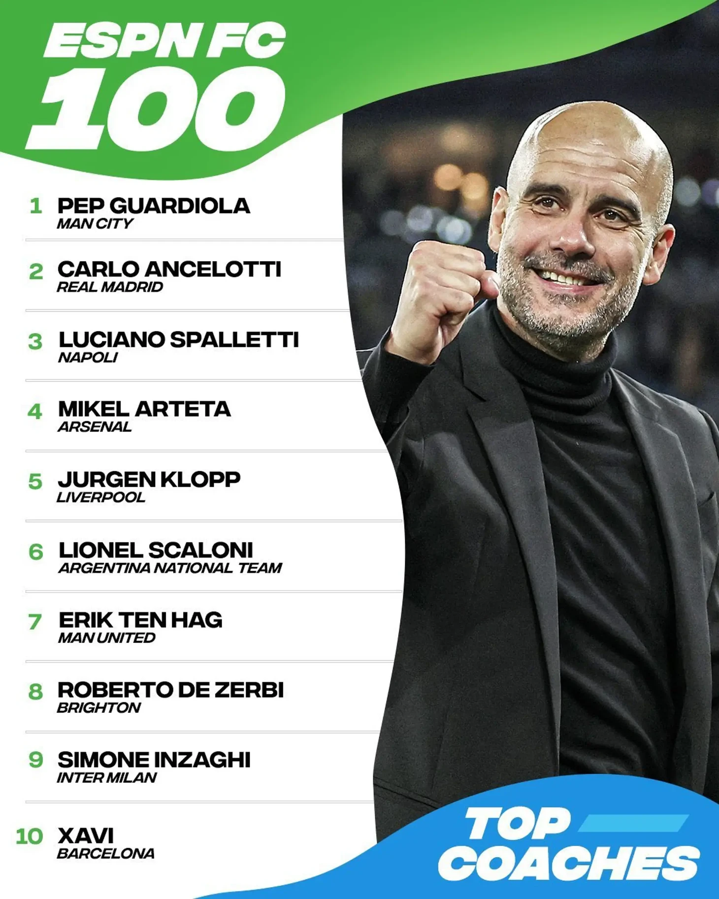 Журналисты ESPN совместными усилиями составили топ-10 лучших тренеров мира сезона-2022-23. Совсем не удивляет то, что первым стал тренер «Сити» Пеп Гвардиола, взявший требл − АПЛ, Кубок Англии и Лига чемпионов.