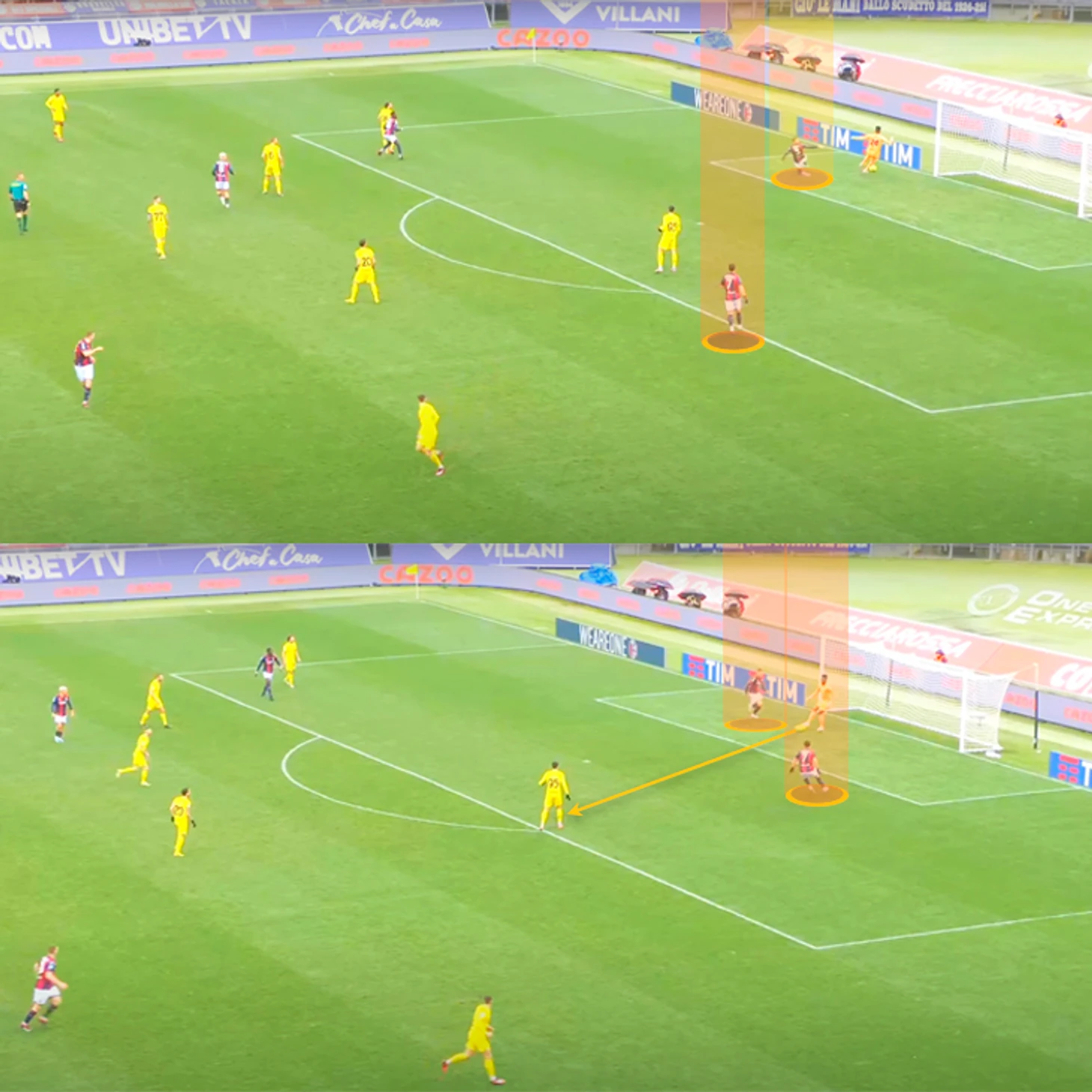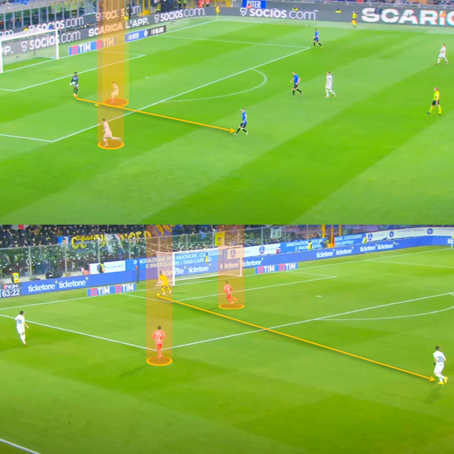 Матч с «Болоньей». Онана укладывает финтом соперника. Второй выдергивается на вратаря, Андре спокойно доставляет мяч в ноги Алессандро Бастони.