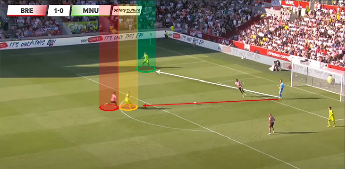 Второй тур АПЛ-2022/23, матч «МЮ» против «Брентфорда». Де Хеа уже пропустил гол слабым ударом из-за штрафной между рук, а теперь дарит сопернику еще один. Вместо передачи на открытого Диогу Далота Давид делает пас на Эриксена, который еще до получения мяча оказался под жестким давлением Матиаса Йенсена. Давид проигнорировал вариант с передачей на фланг (видимо, смутил находившийся рядом Тоуни) и выкатил мяч несущемся в прессинг сопернику. Йенсен легко отжал мяч у Эриксена, через пару секунд он был в воротах.
