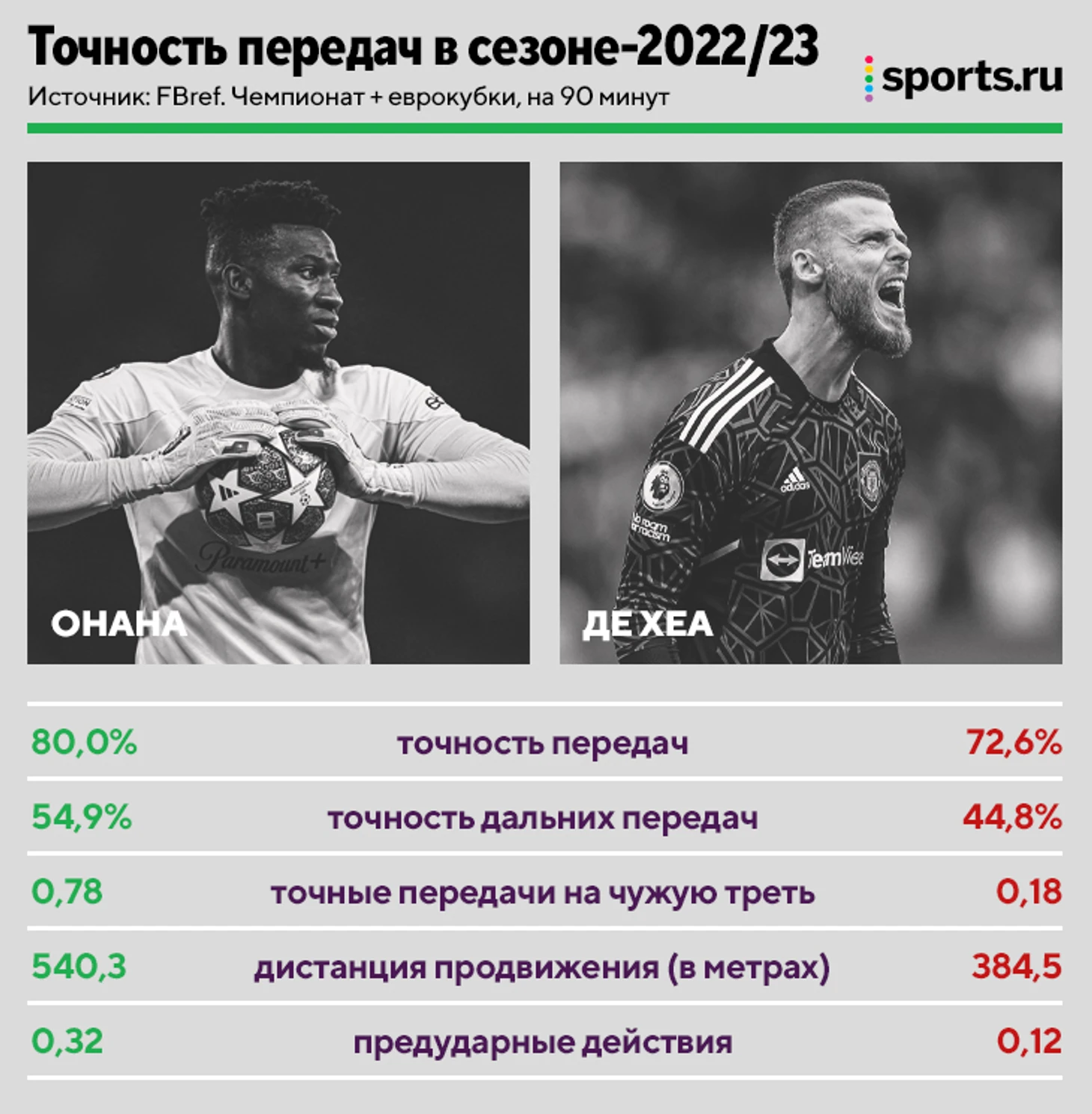 Точность передач Де Хеа была проблемой «МЮ» весь сезон. Даже не приводя к результативным ошибкам или опасным моментам, они регулярно лишали «МЮ» владения в простых ситуациях. У Онана таких проблем нет.