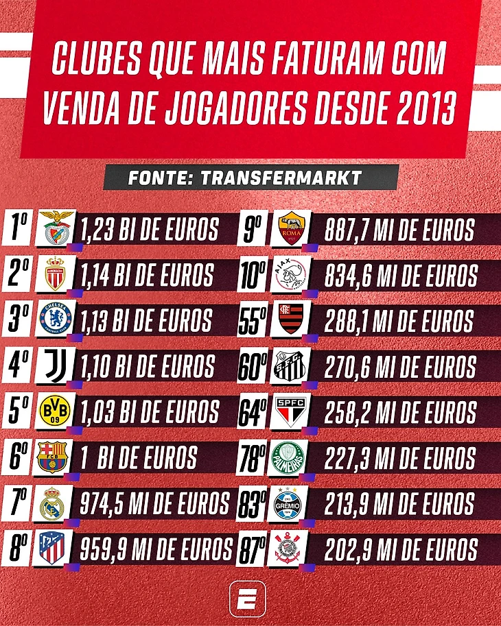 За последние 10 лет Фла самый успешно продающий клуб страны. Среди пяти крупнейших трансферов в Бразилию вообще гегемония клуба из Рио.