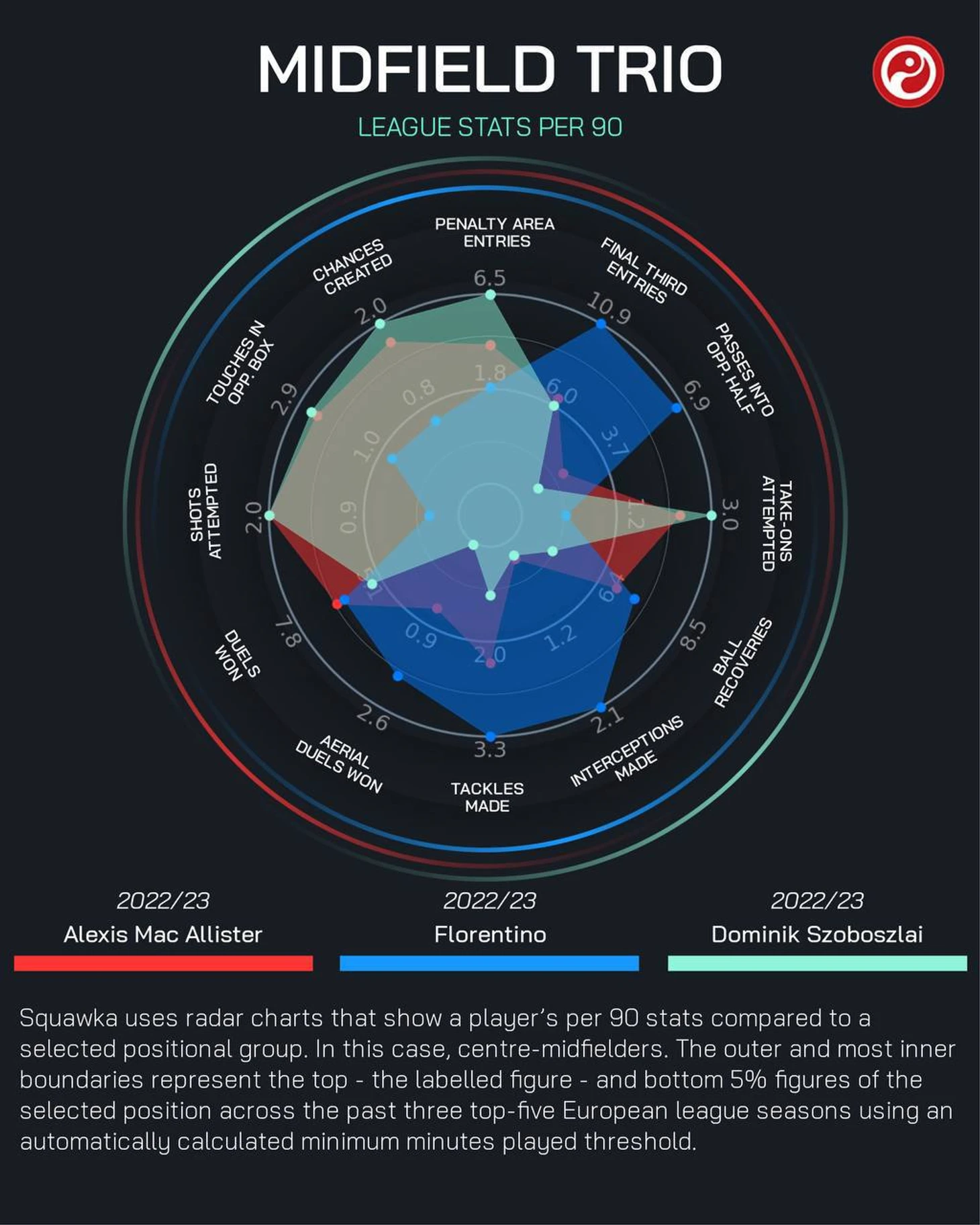 Алексис Мак Аллистер и Доминик Собослаи будут располагаться в центре.