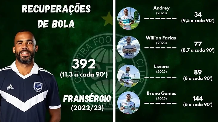 На другом конце Куритибы в сети бело-зеленого клуба попался опытный опорник Франсержио, сделавший себе имя в Португалии, а последние 2 сезона отыгравший за «Бордо».