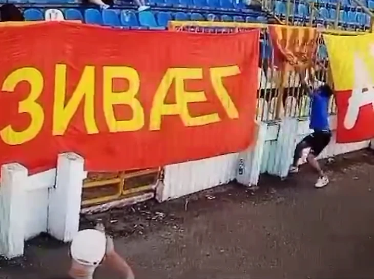 Болельщик Черноморца украл баннер у фанатов Алании спровоцировав потасовку