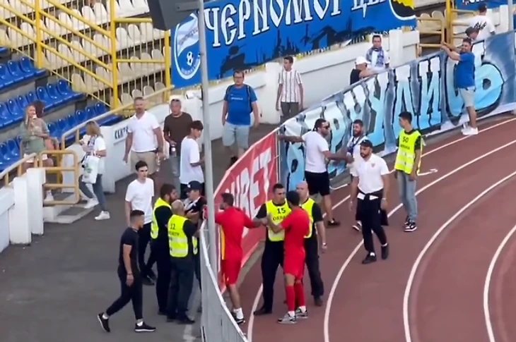 Сотрудники стадиона схватили Копытина и не позволили фанатам «Черноморца» избить обидчика. За лидера фан-клуба «Алании» заступился уроженец Северной Осетии и местный житель, который изначально пришёл поболеть за команду красно-жёлтых. Его также задержали работники стадиона. На кадрах видно, как мужчину грубо перекидывают через забор. В итоге Павла и Азамата отпустили по требованию футболистов «Алании» и представителей службы безопасности клуба.
