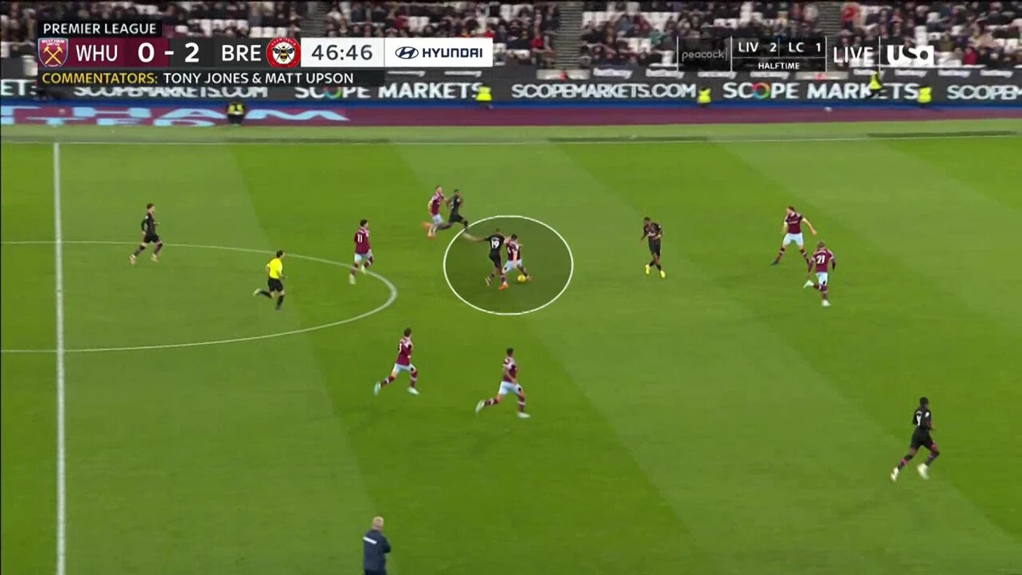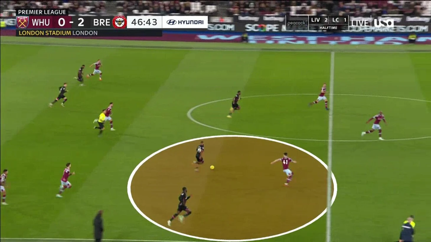 В сезоне-2022/23 опорник «Вест Хэма» – лидер АПЛ по дистанции продвижения мяча и второй по количеству рывков с продвижением. Еще сильнее впечатляет пропорция проходов, в которых на него оказывалось давление (минимум одна попытка отбора со стороны соперника) – 70%.