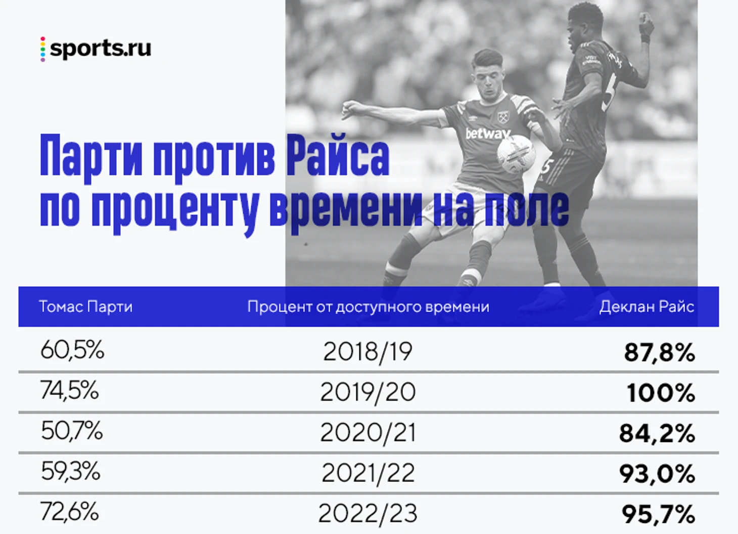 Парти уже на этом уровне – в прошлом сезоне был важнейшим игроком «Арсенала», а без него команду невозможно было узнать. Райс при всем уважении пока не показывал футбол такого качества в этой роли – в его случае мы говорим о наборе качеств и потенциале.