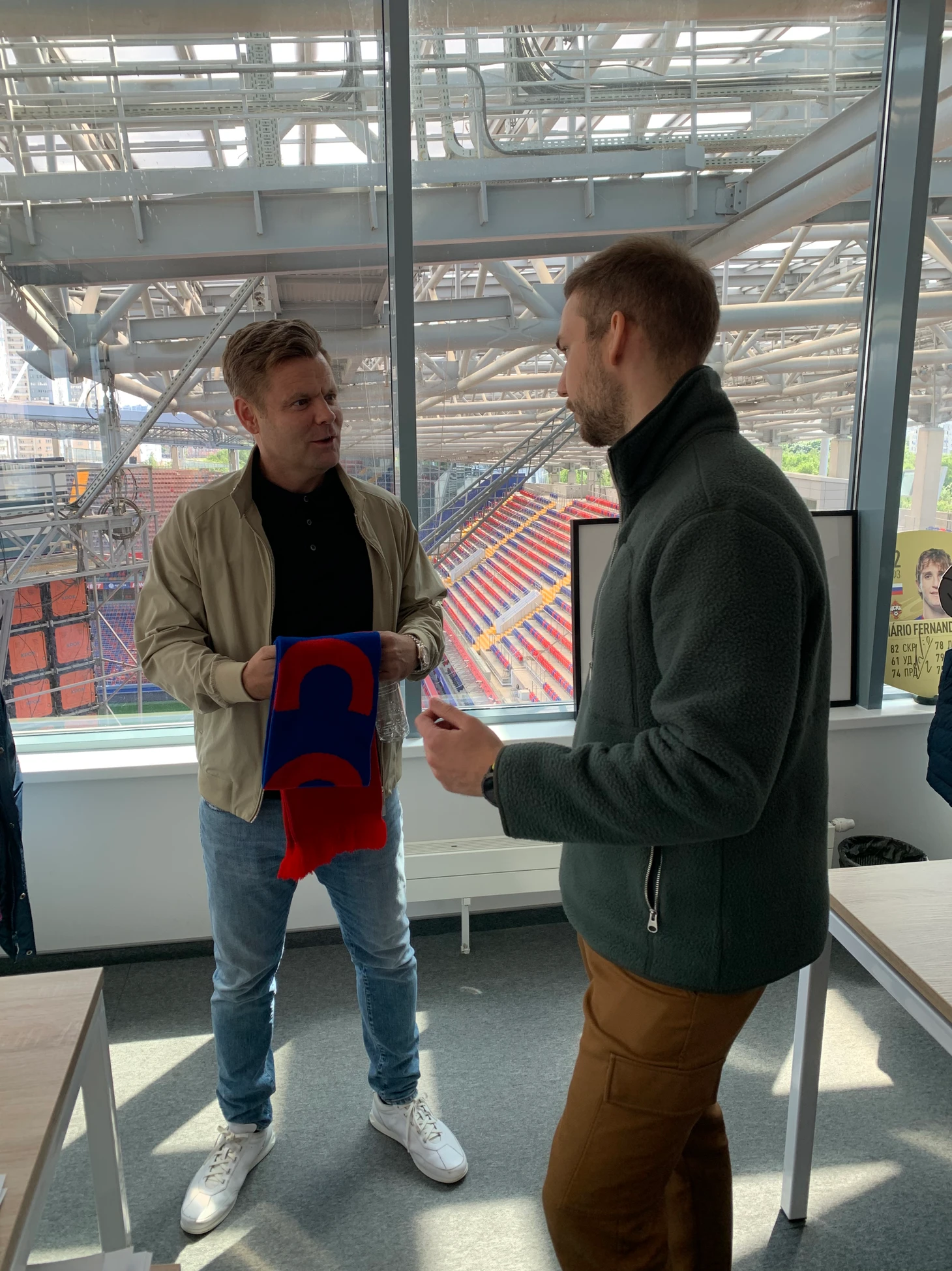 Следующий день выдался не менее насыщенным. Начался он у нас с сразу с двух деловых встреч, после чего мы плавно оказались на ВЭБ-Арене. Ну а как не показать англичанину самый «английский» стадион РПЛ, когда ты сам еще и являешься болельщиком этого клуба?