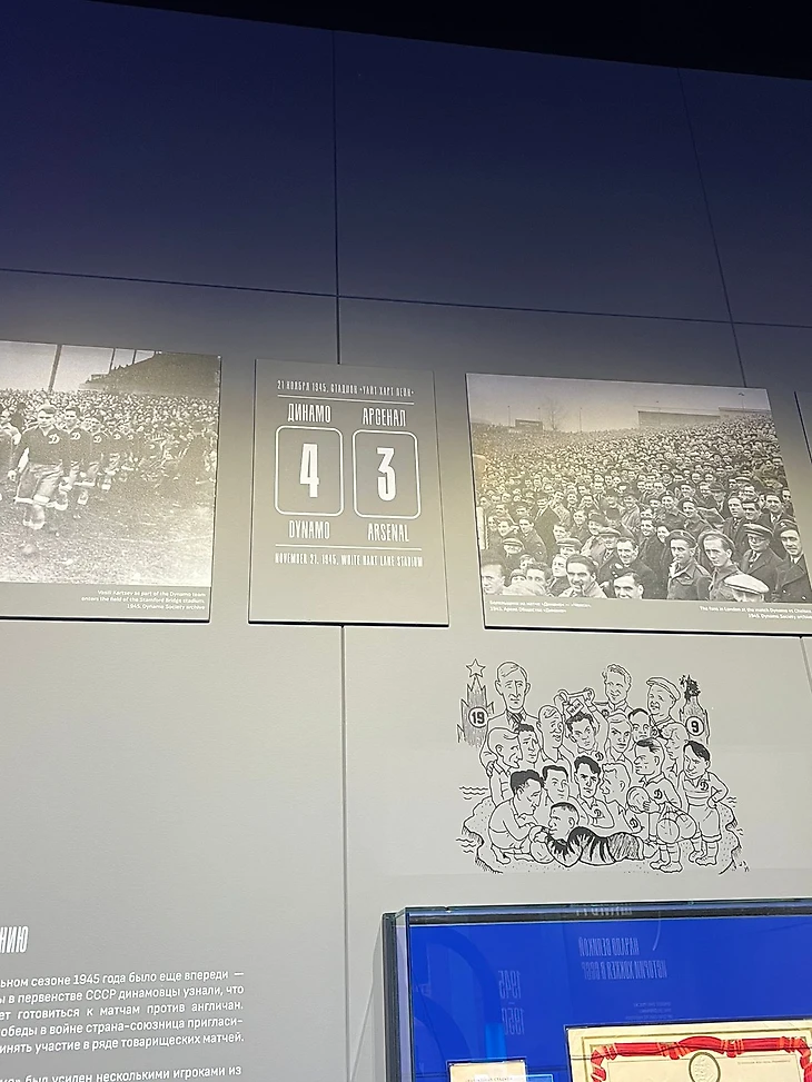 Коллеги из футбольного «Динамо» составили нам компанию, поэтому экскурсия получилась вдвойне интересной. Более того, интерактивные экспозиции, к счастью, шли с английским переводом. Сначала в музее рассказывается об основании общества в советское время.