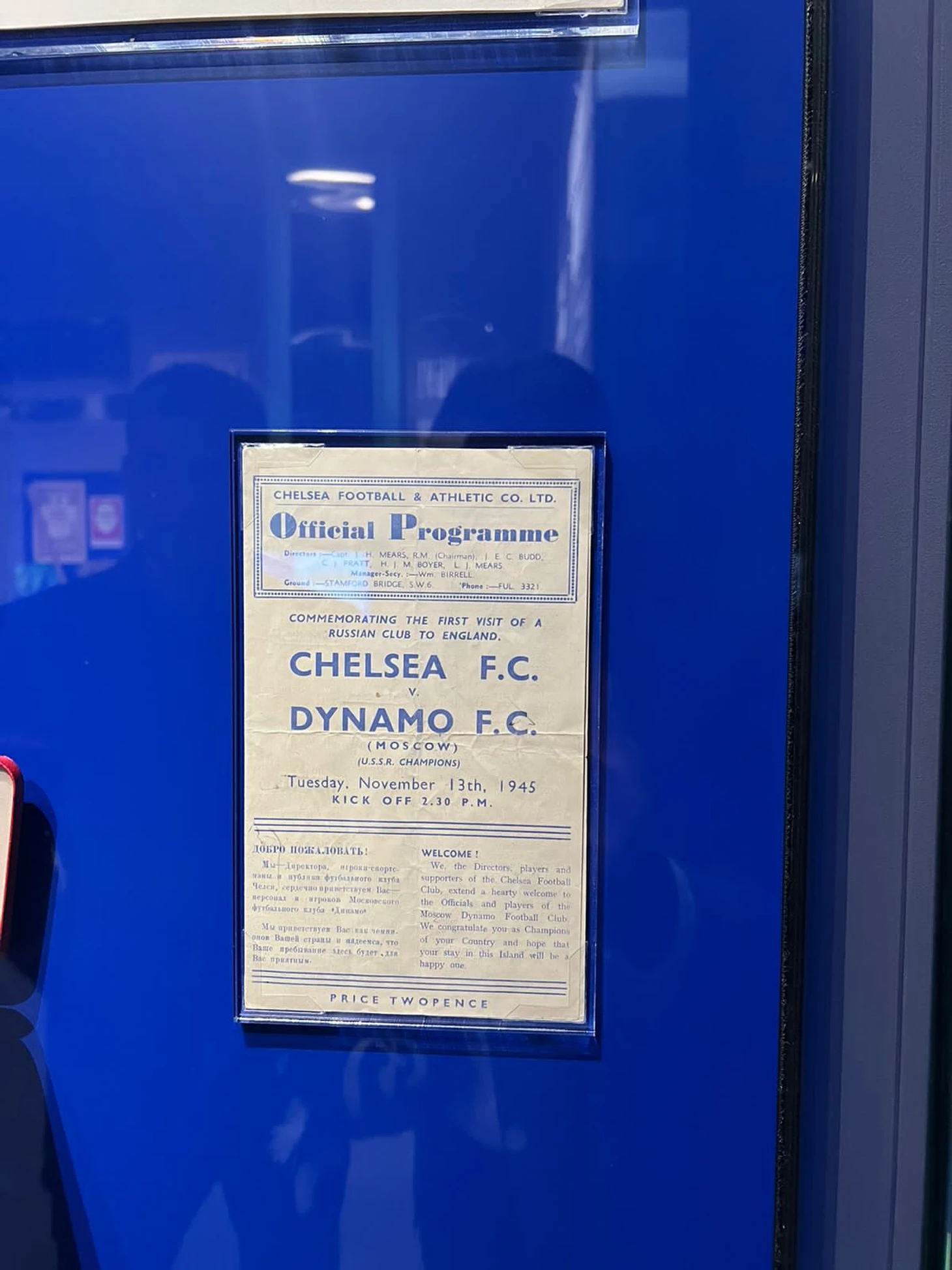 А далее – самое интересное для британского гостя – стенд с историческим турне ФК «Динамо» по Великобритании. Вот так выглядела футбольная афиша на матч «Динамо» - «Челси» 13 ноября 1945 года.