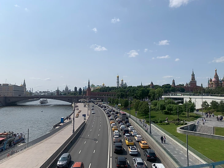 Далее мы приняли решение немного скорректировать план на день Поскольку времени на осмотр города было немного, то сев за руль, мы развернулись и вместо Химок направились в сторону центра Москвы. Это казалось единственным окном с хорошей погодой в плотном графике, да и как не показать иностранному гостю, который впервые в России, центр столицы?