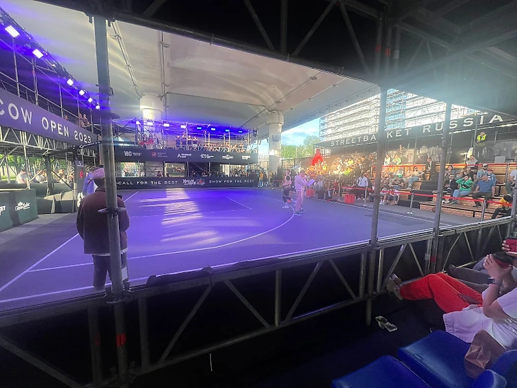 Арену мы покинули минут через сорок и хотя наша деловая часть была закончена, спортивная – ещё нет. Выходной день и летнее время года – тот самый момент, когда жизнь бурлит на всей территории «Лужников», а потому у нас была возможность показать Крису во всей красе аналог микрорайона Dubai Sports City. Сначала мы зашли на легендарную площадку «ПодМостом» возле метро «Воробьевы Горы», где в настоящей уличной атмосфере проходил стритбольный турнир «Moscow Open».