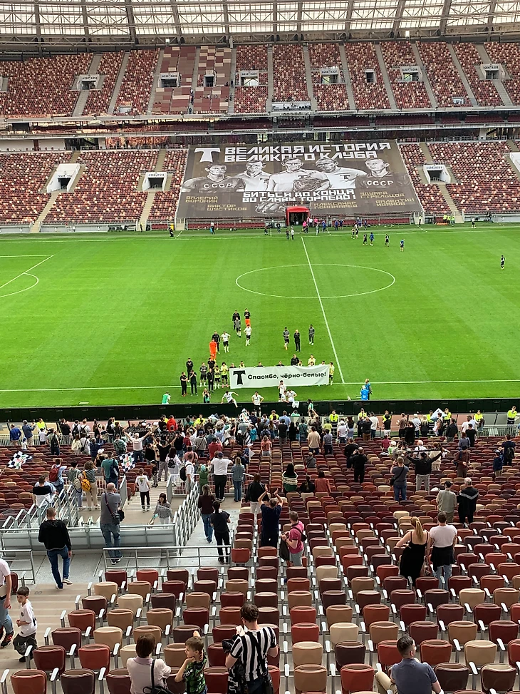 Приближаясь к стадиону, Крис несколько раз переспросил, точно ли сегодня здесь будет игра и на верную ли арену мы сегодня приехали. Для британца это был когнитивный диссонанс, видя восьмидесятитысячный главный стадион страны и пустующие входы на него за несколько минут до начала. Естественно, про эту ситуацию вокруг «Торпедо» я рассказал заранее, но не увидеть удивление на лице Криса было невозможно.