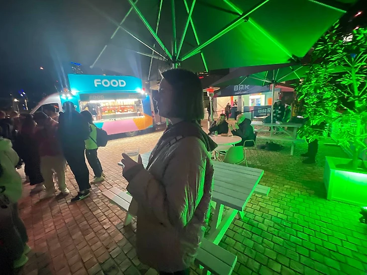 Помимо бара работает несколько фуд-траков, причем в каждом из них разная еда: где-то различные сладости, где-то бургеры, где-то только снеки, а где-то только морепродукты.