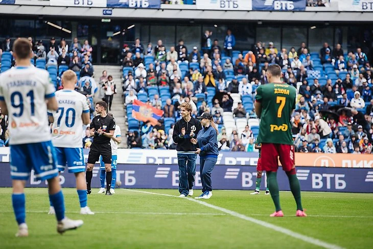 Вернувшись на стадион, Снежана встретила команду у поля, пообщалась с Арсеном Захаряном и заплакала от переизбытка чувств. А еще – огласила состав, как настоящий диктор, и нанесла символический удар по мячу вместе с блогером Владом А4. Матч она смотрела из вип-ложи.