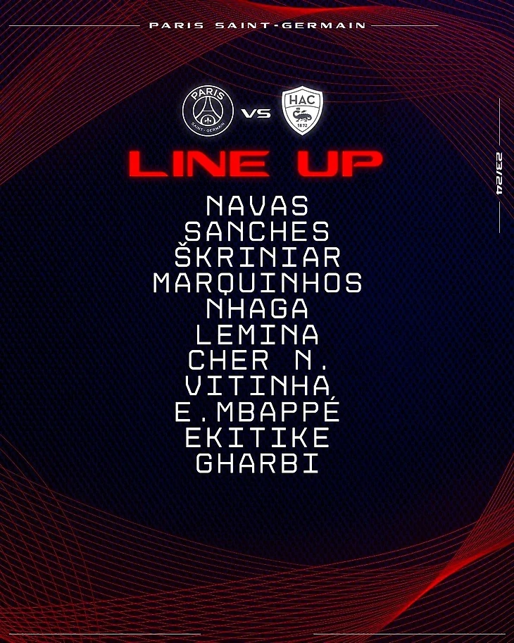 После первого тайма, в котором счет так и не был открыт, Энрике произвел замены. Состав «ПСЖ» на вторую половину матча выглядел так: