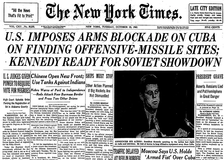 Кеннеди добился объявления блокады Кубы, которую формально назвали «карантином». Решение принимали не единолично США, а Организация американских государств (туда входили почти все страны Западного полушария, но не Куба), проголосовавшая за ответные меры. «Карантин» означал, что Соединенные Штаты могут досматривать все суда, направляющиеся в кубинские порты, и будут разворачивать их, если найдут оружие.