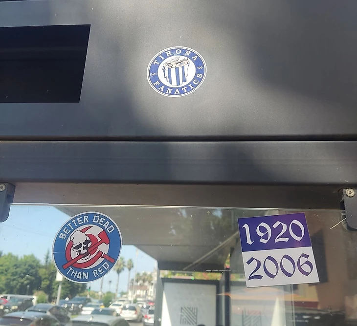 К концу первого круга чемпионата Грузии у стадиона появилась палатка с мерчем. На матче ЛЕК (UECL) уже была обтянута тентом, посвященным 100-летию клуба. Ассортимент был сильно расширен: несколько вариантов футболок, шарфов, брелки, зажигалки, блокноты. Цены вполне демократичные: шарфик, если не правильно услышал, 15 лари (6$), значок, который взял себе в небольшую коллекцию - 3 лари (1.2$, для сравнения, значок Евро U-21 стоил 10 евро). В одном из предыдущих постов указывал, что стараюсь покупать футбольные значки в стране/городе нахождения клуба, а не заказываю в интернете, некоторые были подарены друзьями.