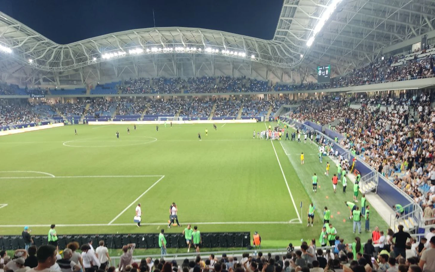 Позже подтянулась остальная команда, у которой состоялся, скорее всего, не очень приятный диалог с представителями фан сектора. В это же время Тирана отмечала выход в следующий раунд со своими болельщиками на другом конце поля.