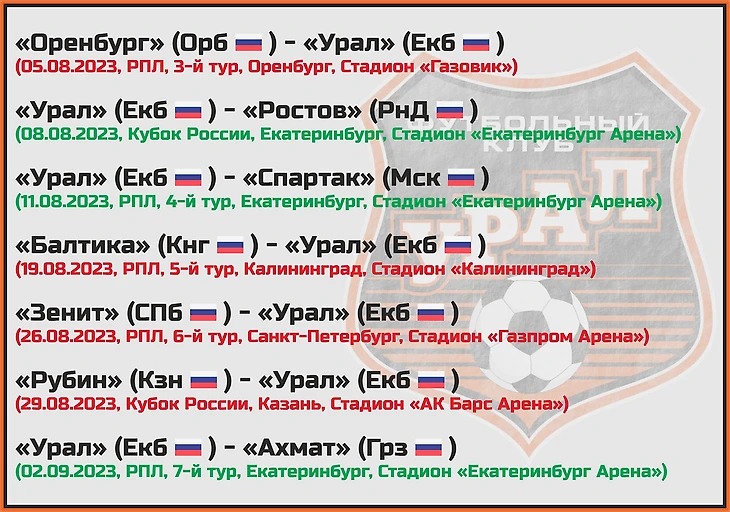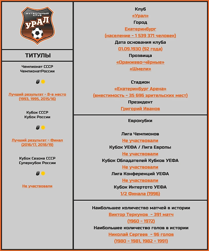Статистическое превью ФК «Урал» от блога «Топ-7 Матчей Недели»